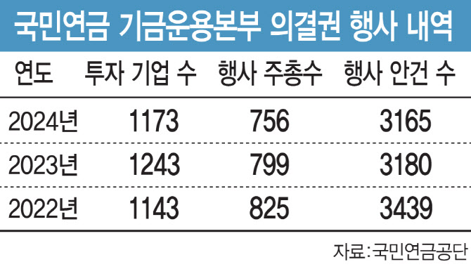 27일 국민연금에 따르면 연금의 지난해 국내주식 의결권 행사 건수는 총 3165건에 달한다. 국민연금이 참여한 주주총회 건수도 756건을 기록했다. 기금운용본부의 수탁자 책임 활동 관련 업무를 담당하는 수탁자책임실의 현재 인력이 수책실장을 포함해 총 19명에 그치는 점을 감안하면 1인당 약 167건을 맡는 셈이다. 당초 수책실을 신설하던 지난 2018년 목표 정원은 30여명 이상이었으나, 십여년 넘게 충원 노력도 여건도 미비한 실정이다.