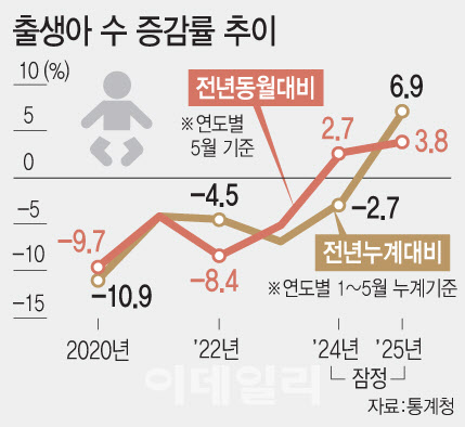 통계청 관계자는 “5월은 특별히 출생아 수가 많지 않은 평균적인 달에 해당한다”면서 “그럼에도 출생아 수 증가율이 14년 만에, 수 역시 10년 만에 최대를 보였다”고 설명했다.