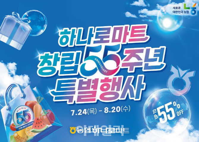 [이데일리 김태형 기자] 농협경제지주(농업경제대표이사 박서홍)는 하나로마트 창립 55주년을 기념해 24일부터 다음달 20일까지 최대 58% 특별 할인행사를 실시한다.